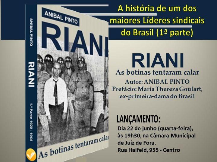 LIVRO: “Riani – 1ª Parte – As botinas Tentaram Calar”. Lançamento dia 22 de junho, às 19h30, na Câmara Municipal de Juiz de Fora. Autor: Anibal Pinto. Contato: (32) 98848-6255; [email protected]
