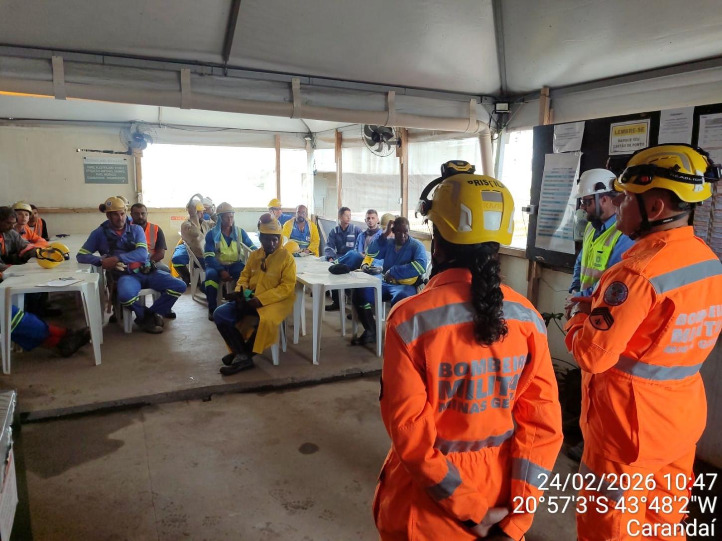 O cronograma da ação teve início com uma palestra educativa direcionada aos trabalhadores. Durante a instrução, foram abordadas as condutas adequadas diante de situações críticas e a correta identificação dos órgãos de emergência que devem ser acionados em casos reais. A iniciativa busca fortalecer a cultura de segurança e garantir que os operários saibam como reagir nos primeiros minutos após uma ocorrência.
