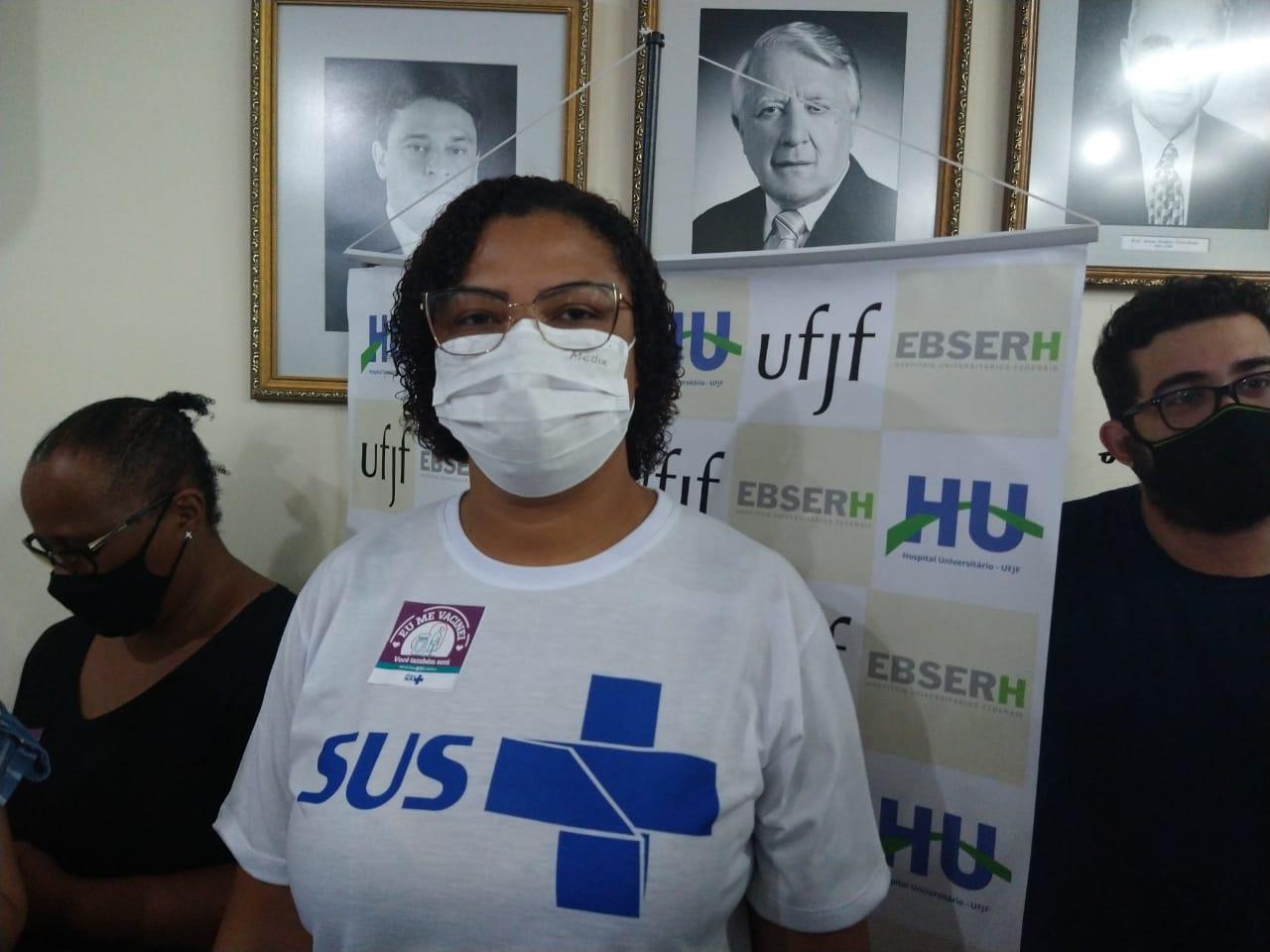 Na manhã desta quarta-feira (20) teve início em Juiz de Fora a vacinação contra a Covid-19. A cerimônia foi realizada no Hospital Universitário da Universidade Federal de Juiz de Fora (HU-UFJF), unidade Santa Catarina. Foram vacinadas quatro mulheres que trabalham no combate da pandemia Eva Sueli Faustino técnica de enfermagem, Amanda Assunção Sudário enfermeira, Denise Maria Rocha de Freitas técnica de enfermagem e Geórgia Andréia de Carvalho Castro enfermeira. Estavam presentes também a prefeita de Juiz de Fora, Margarida Salomão (PT), Juraci Sheffer presidente da Câmara de Vereadores de Juiz de Fora, o Secretário Estadual de Saúde de Minas, Carlos Eduardo Amaral, Ana Pimentel Secretária de Saúde, Marcus David reitor da UFJF e Dimas Araújo Superintendente do HU.