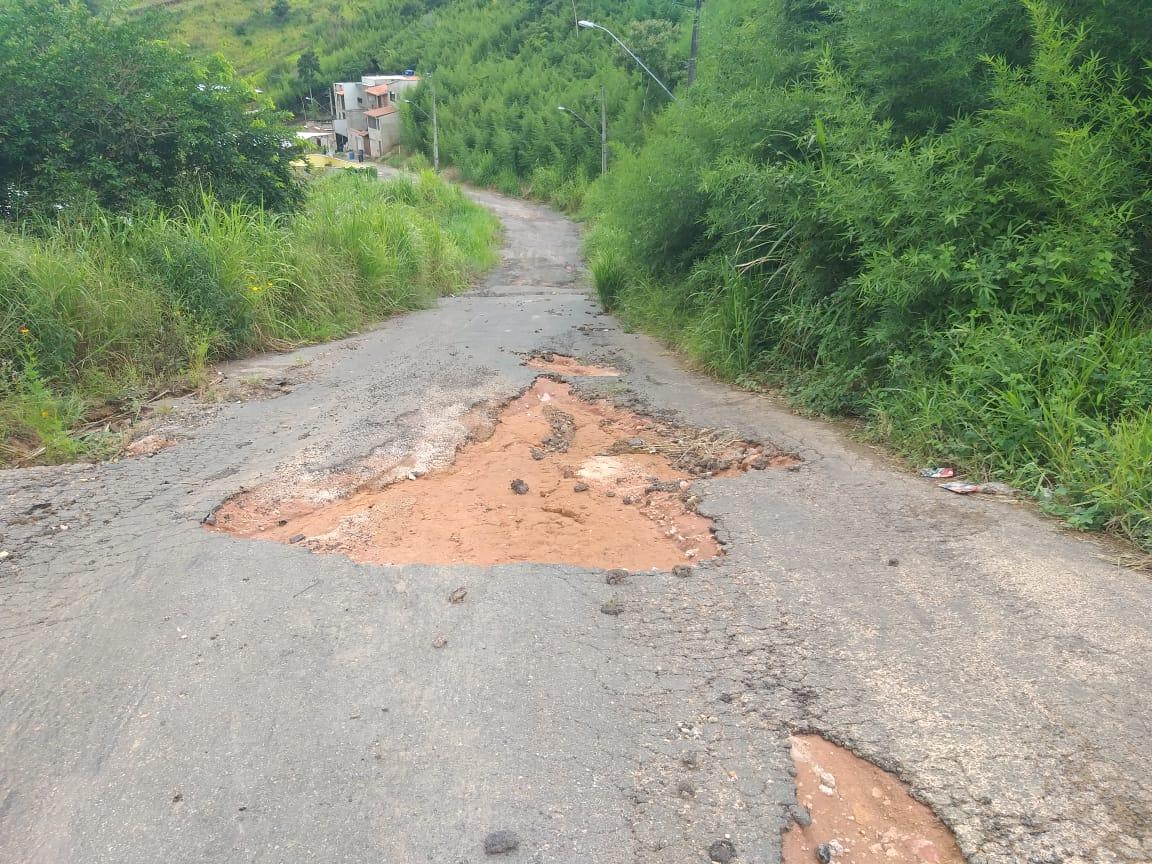 Além do deslizamento, as chuvas também causaram muitos estragos na rua Geraldo Dias Passos. A via sofreu erosão por conta do fluxo de água.