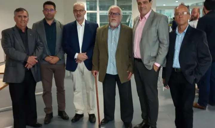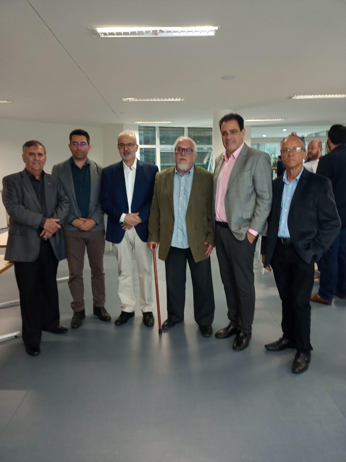 Na foto referente ao “Café Empresarial” estão: presidente da ACEJF, Aloísio Vasconcelos; Drº. Fabrício; Reitor UFJF, Marcus Vinicius David; subsecretário de Estado de Ciência, Tecnologia e Inovação, Felipe Attiê; secretário de Desenvolvimento da PJF, Ignacio Delgado e diretor da ACEJF, Wilson Cyrillo.