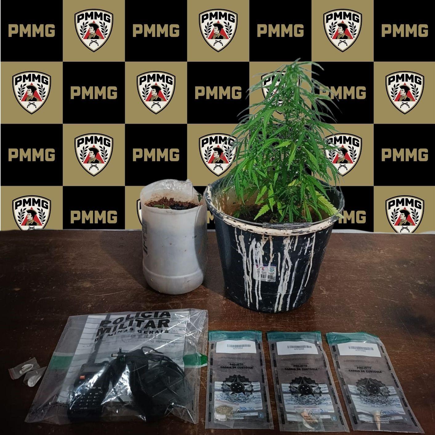 No imóvel, foram encontrados dois vasos com pés de maconha, uma bucha da mesma droga, um pino de cocaína, um cigarro parcialmente consumido e um rádio comunicador. O Conselho Tutelar acompanhou a ocorrência, e o jovem foi encaminhado à Delegacia de Plantão de Ubá.