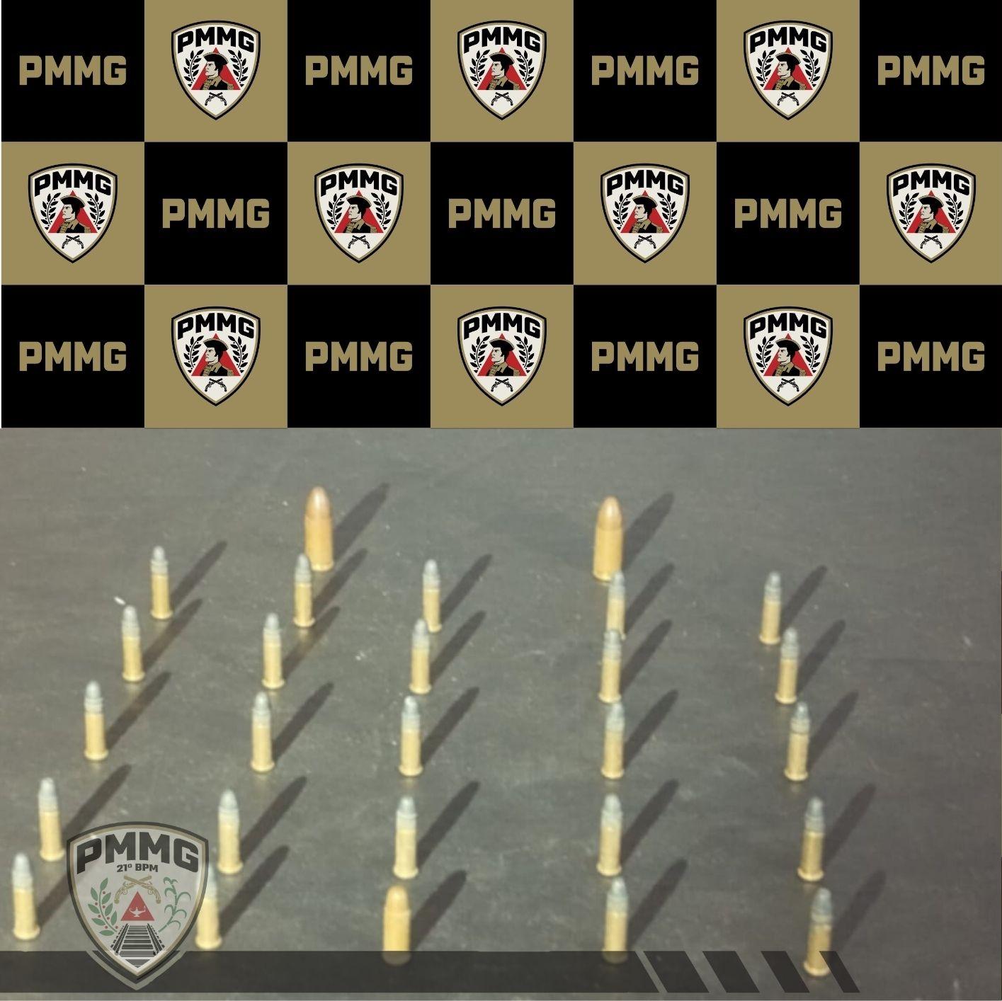 Ainda em Visconde do Rio Branco, no turno da tarde de sábado (07/02), munições de calibre .22 e 9mm foram apreendidas no bairro Novo Horizonte. Um jovem de 18 anos fugiu ao avistar os policiais, descartando o material em um matagal.
