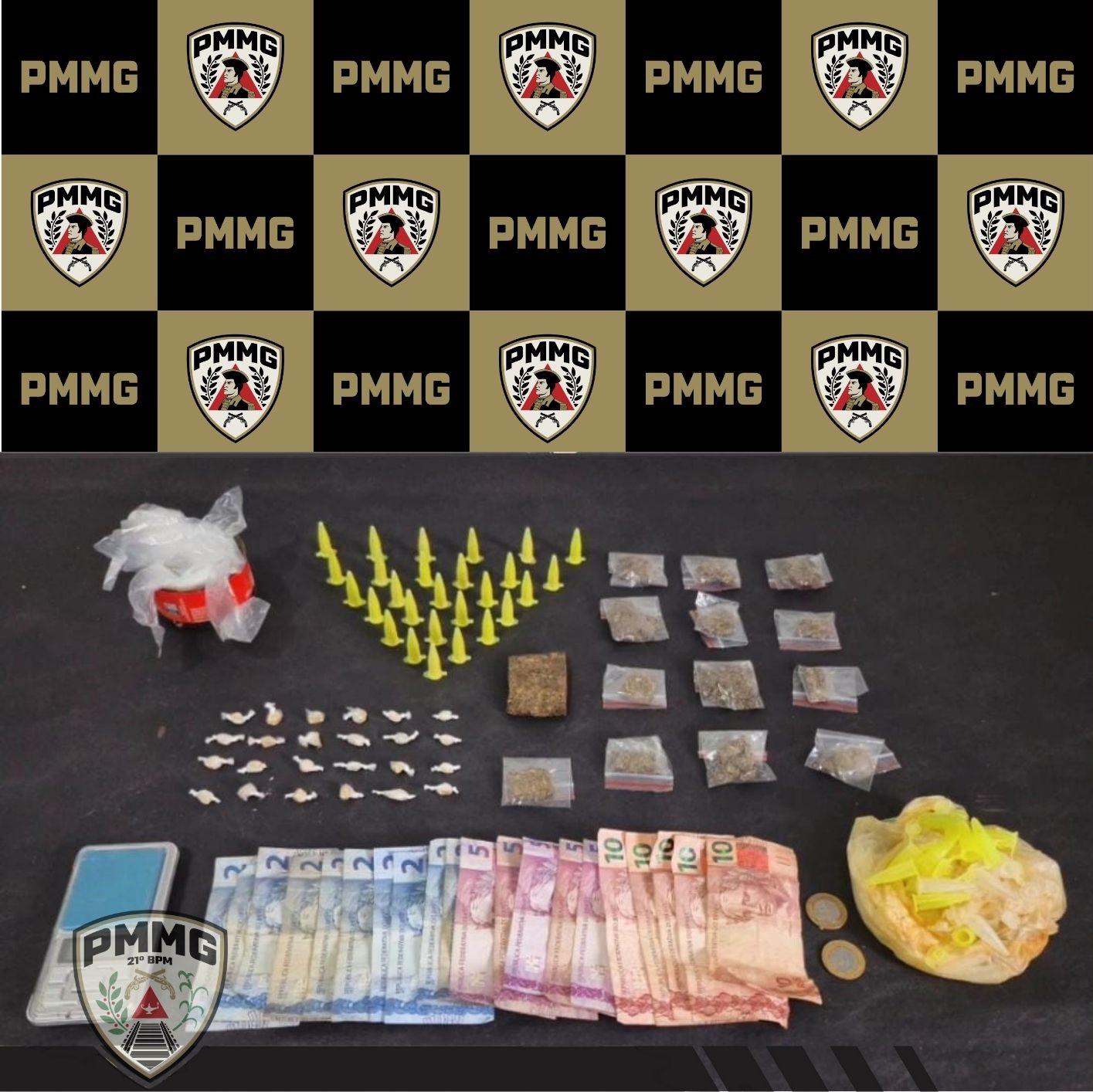 No turno da madrugada de 26/01, em Visconde do Rio Branco, um homem de 57 anos foi preso no bairro Alto Boa Vista. Após denúncia de venda de entorpecentes em um imóvel abandonado, os militares apreenderam porções de cocaína, crack, maconha e uma balança de precisão.