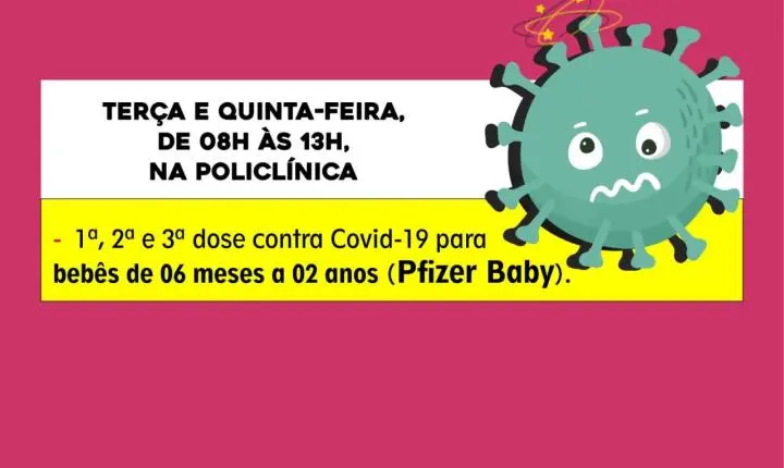 - 1ª, 2ª e 3ª dose contra Covid-19 para bebês de 06 meses a 02 anos (Pfizer Baby).